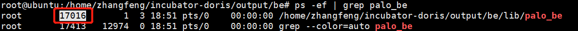 Note: /home/workspace/doris/output/be/lib/doris_be is the executable file of be.
